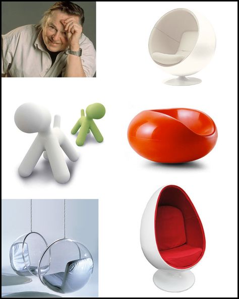 Пионер пластика, живой классик финского дизайна Ээро Аарнио (р. 21 июля 1932 г., Хельсинки) — автор объектов не просто культовых, а вневременных. Его дизайн уже давно не привязан к 60-м годам XX века и адекватно существует в современном интерьере.