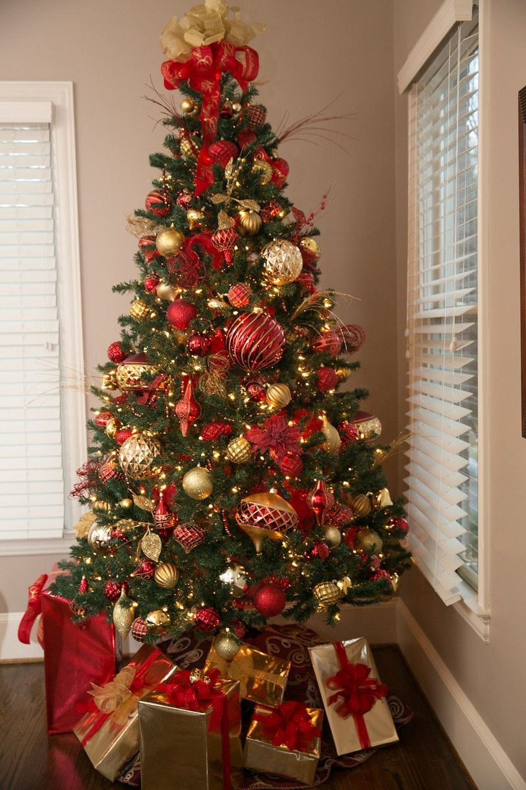 Украшение елки в красно золотом цвете