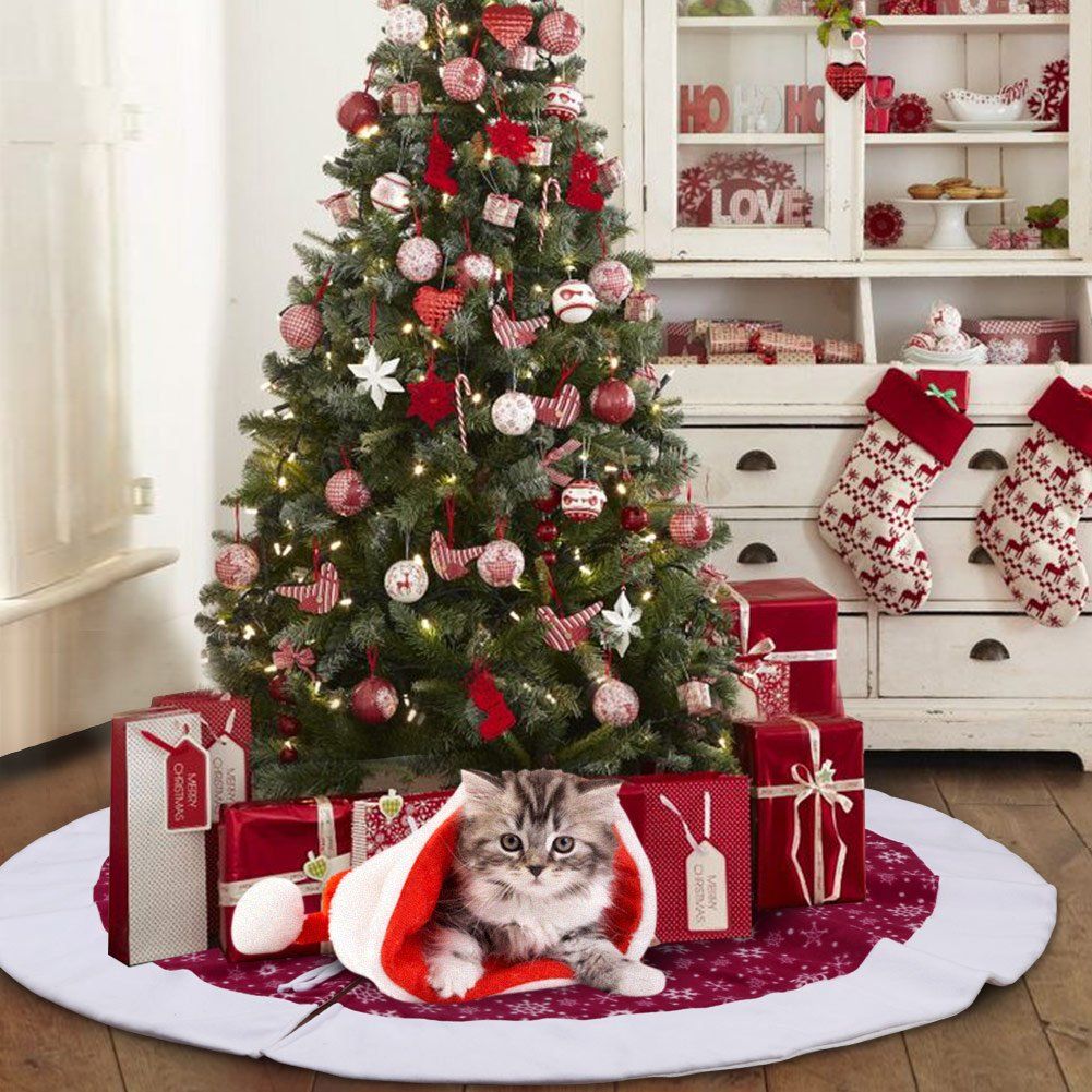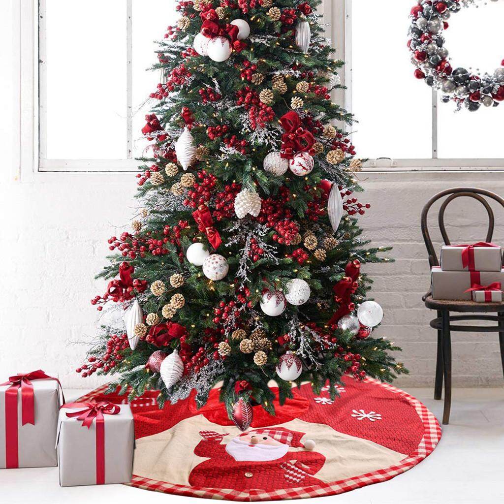 Если вы хотите добавить последний штрих в роскошь и неподвластный времени стиль, выберите стеганую юбку из дерева для вашего дерева Вышитая стеганая ЮБКА из дерева с красно-белым рисунком WINTER FROST.