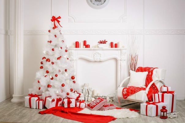 Новогодний декор в красно белом цвете
