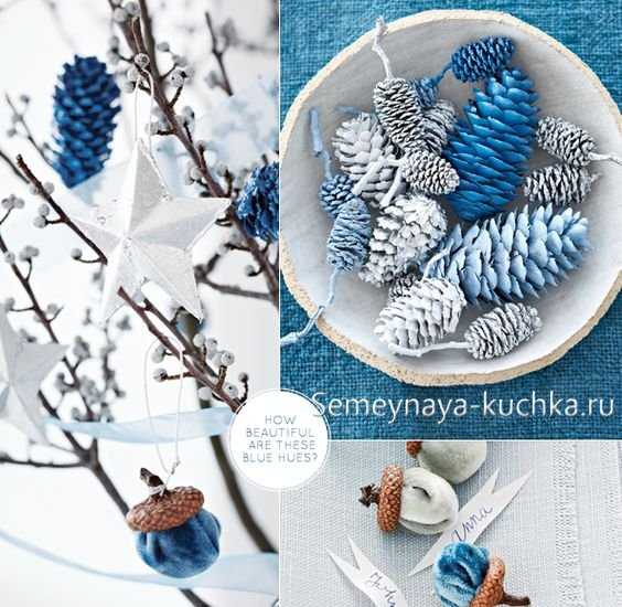 Шары, бусы, сосульки, банты, колокольчики выбранного цвета, купить в магазине — не проблема. Главное, чтобы они не были разномастными, совпадали по оттенку. Ведь индиго, бирюза, ультрамарин, лазурь — всё это синий.