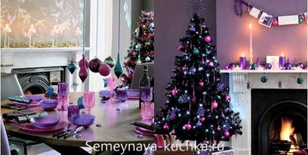 И раз уж речь зашла об оттенке синего индиго… то он красиво смотрится с ярко-лиловым цветом на фоне свежей еловой зелени. В поддержку к общему оформлению Синего Нового Года квартиры можно купить свечи того же цвета… посуду… салфетки на стол и даже чехлы на диванные подушки.