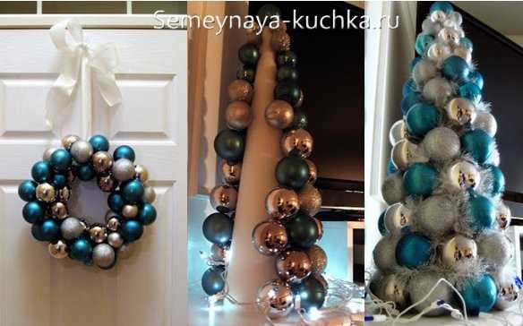 Такими же синими и зелеными шарами можно украсить и саму новогоднюю елку.