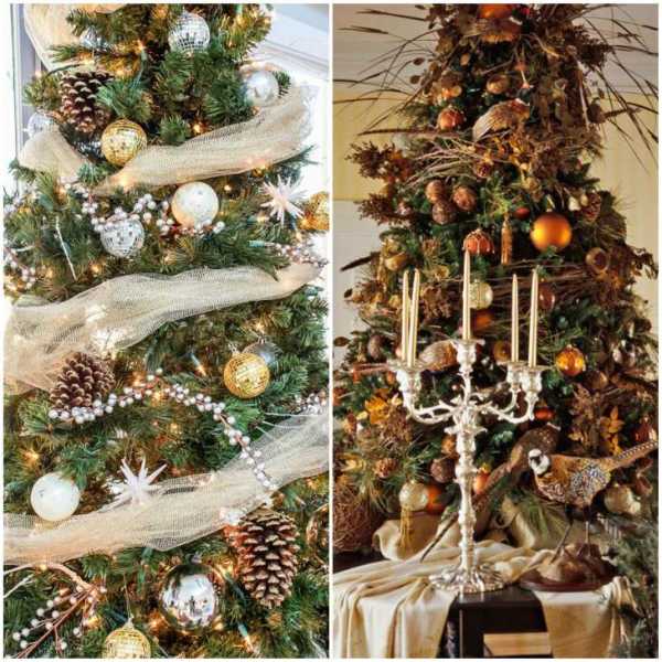 Вот варианты того как умеренно украсить елку, оставив место зеленым пушистым веточкам (фото ниже)