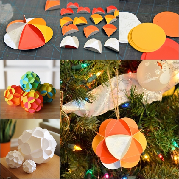 Смотрите красивые ёлочные шары из бумаги своими руками на фотографиях ниже.