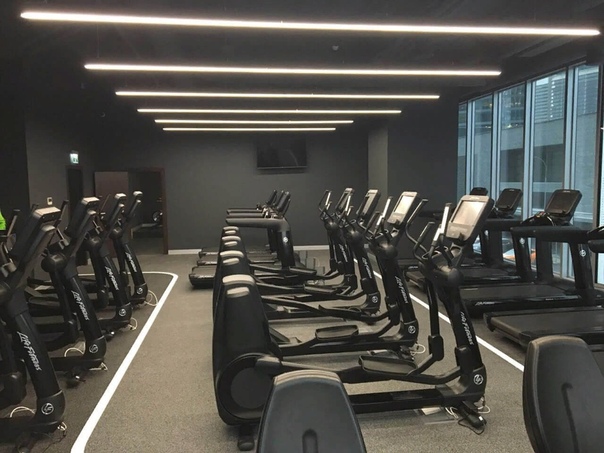 Спортзал — это не просто скучное серое пространство. Кардиозона имеет панорамный вид на бассейн и улицу.Всего для групповых занятий три зала, в том числе студия йоги и пилатеса, тхэквондо. Тренировки не всегда проходят под крышей, это очень популярные летние программы на свежем воздухе.