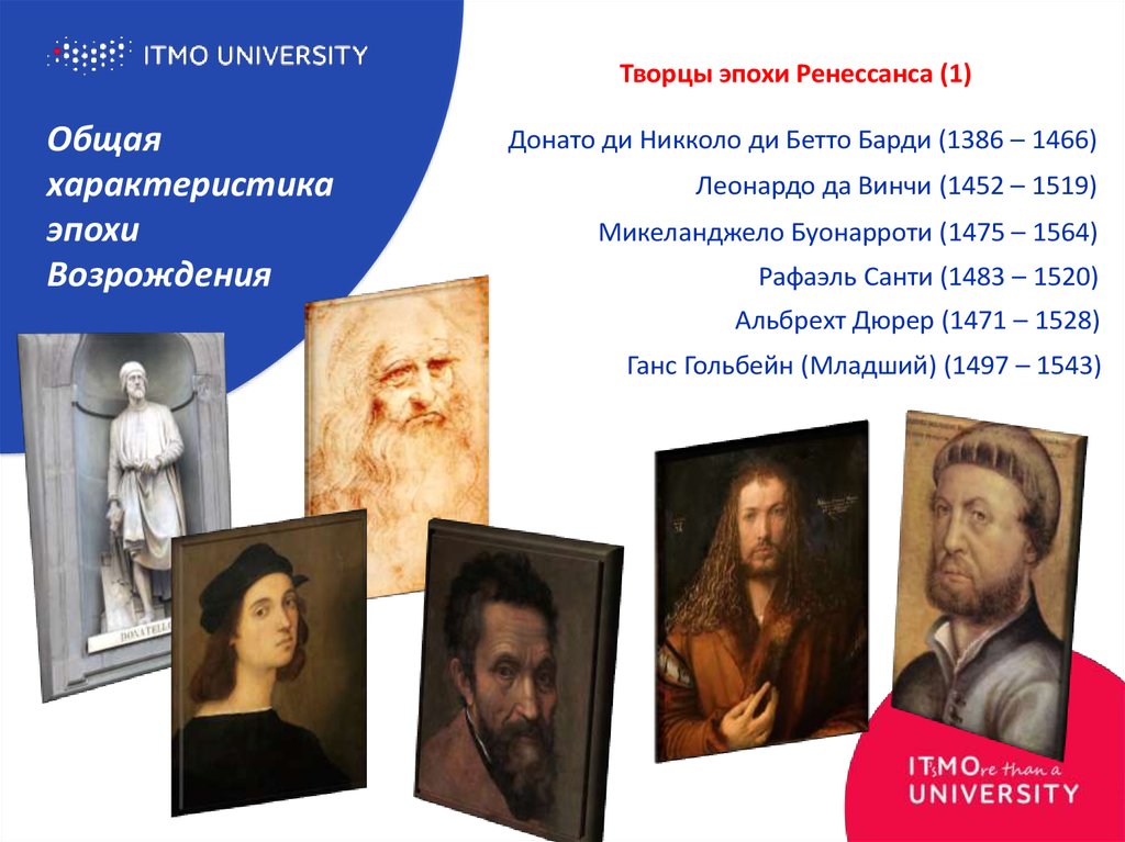 Тициан .Стоит отметить и то, что статус профессии художников и скульпторов переходит на новый уровень, ведь теперь создание картин и скульптур требует мыслительных подготовки и серьезной техники.