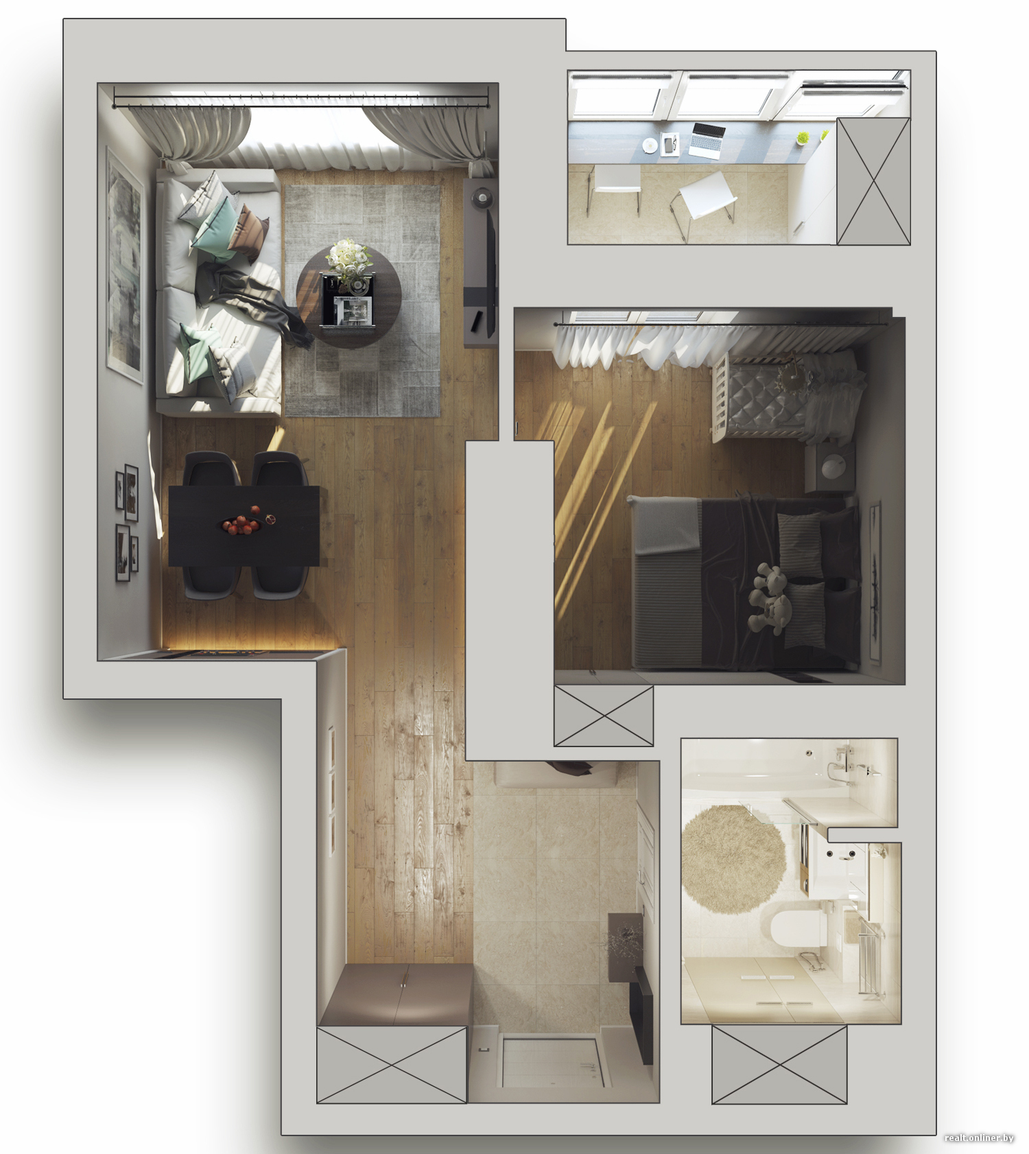 Мы уже выяснили, что такое евродвушка, а теперь расскажем о планировках с фото и как лучше обустроить такую квартиру, чтобы исправить ее недостатки.