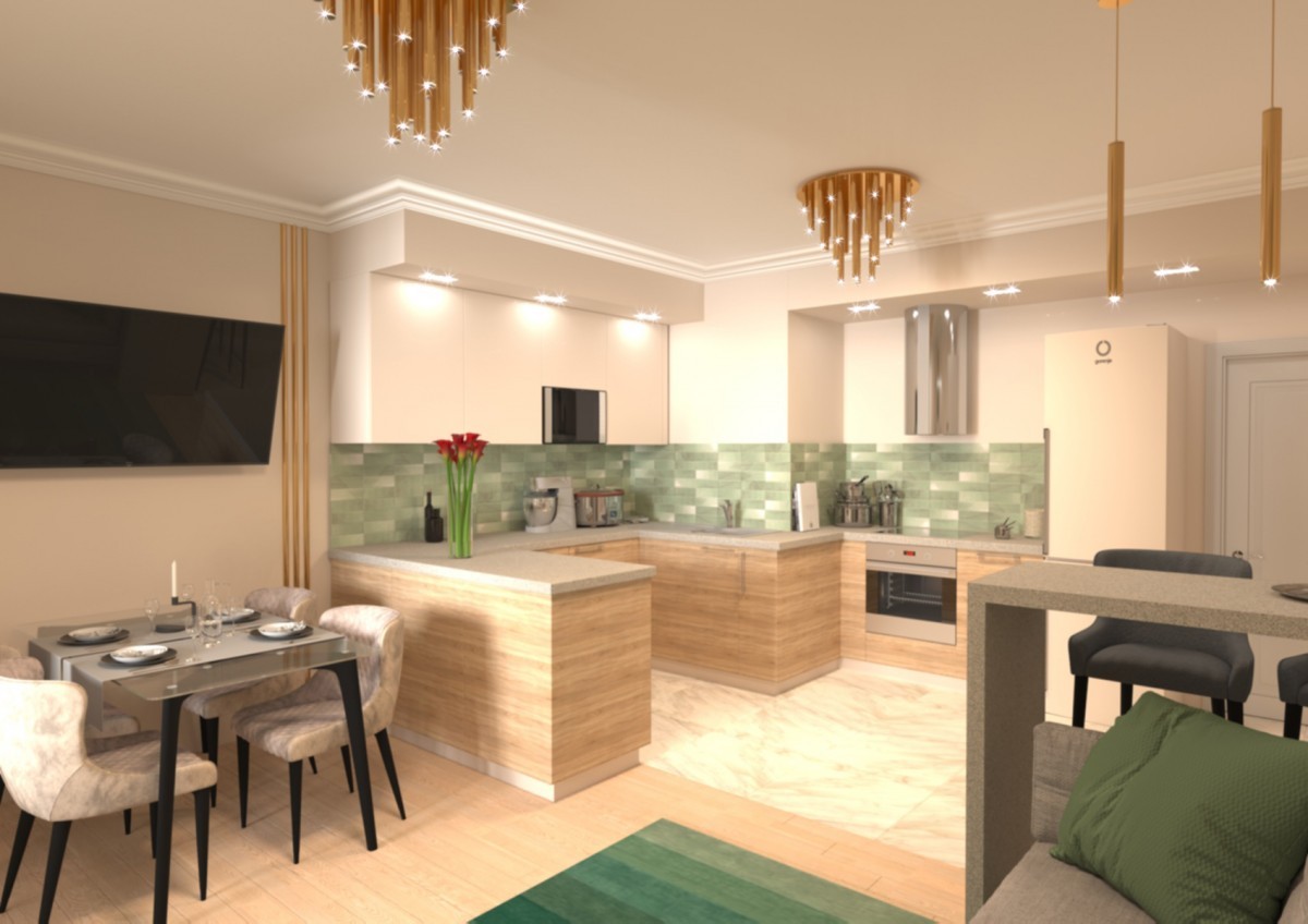 По сути, евродвушка — однокомнатная с огромной кухней (под неё отводят 25–40% площади), евротрёшка — двухкомнатная с кухней-гостиной (20–35% метража) и так далее (хотя 4 и более комнат встречаются крайне редко).