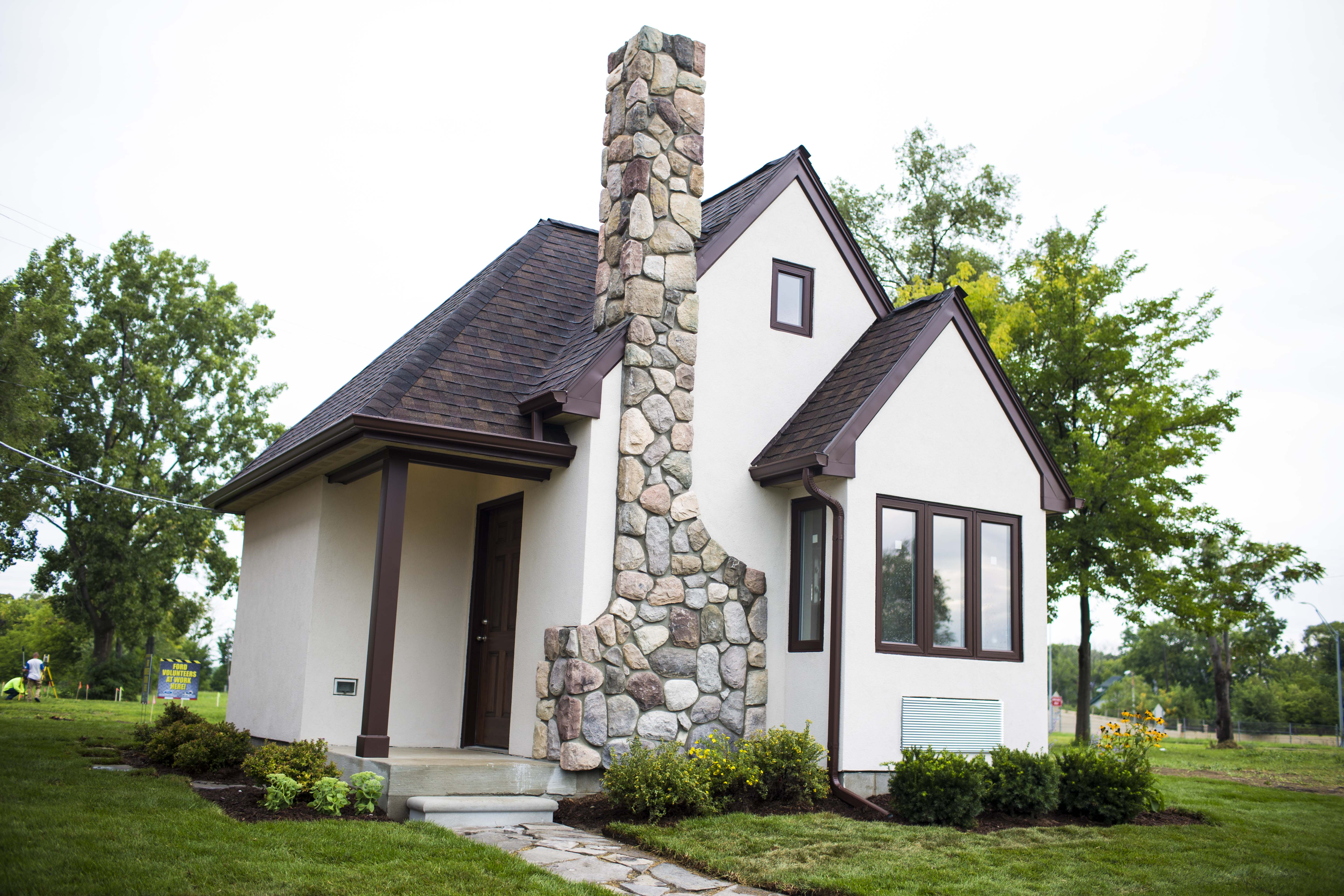 This is the renovated design which highlights the vaulted ceiling that projects through to the exterior.