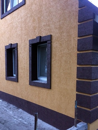 Основой декоративной штукатурки служит мраморная крошка и цемент. Зернистость состава в значительной степени влияет на ее расход: чем крупнее «зерно», тем выше расход и, наоборот. Но и фактурная поверхность, естественно, будет иметь свои особенности. Крупная крошка будет давать более выразительный рисунок. Хотя и тут все зависит от мастерства исполнителя фасада.