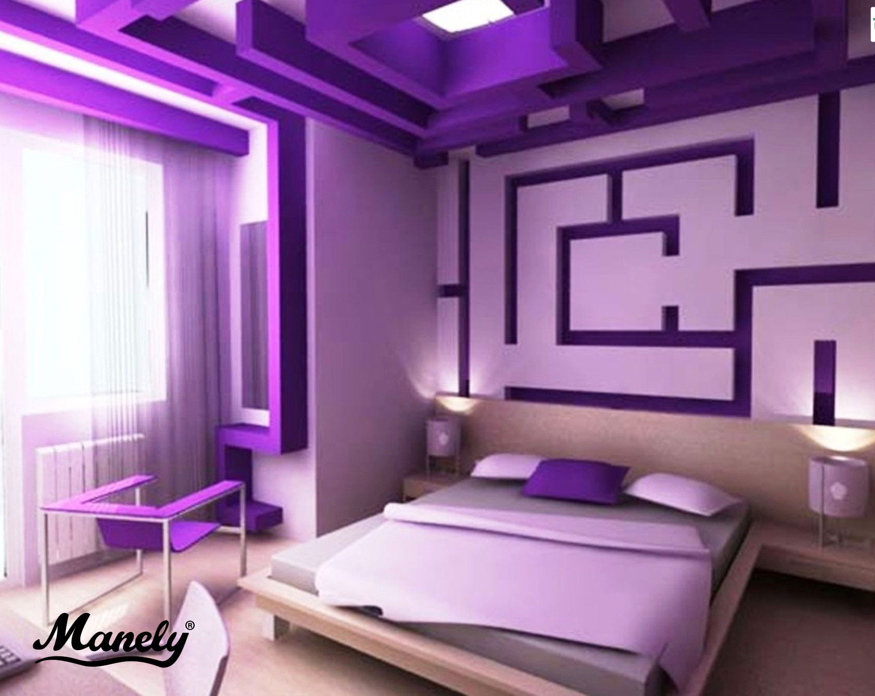 Сочетание фиолетового и белого цветов. Наилучшим оформлением спальни является именно этот вариант, поскольку данные цвета особенно хорошо оттеняют друг друга.