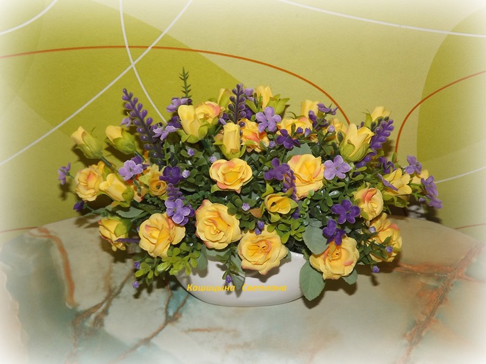 Наш букет в кашпо готов. Надеюсь, мой урок флористики для начинающих был понятным и доступным.