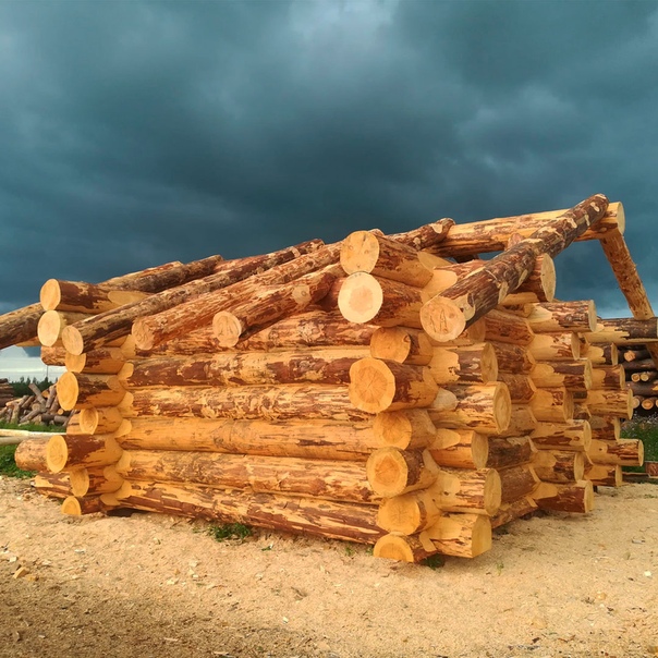 Фото деревянных домов из бревна на завершающей стадии строительства