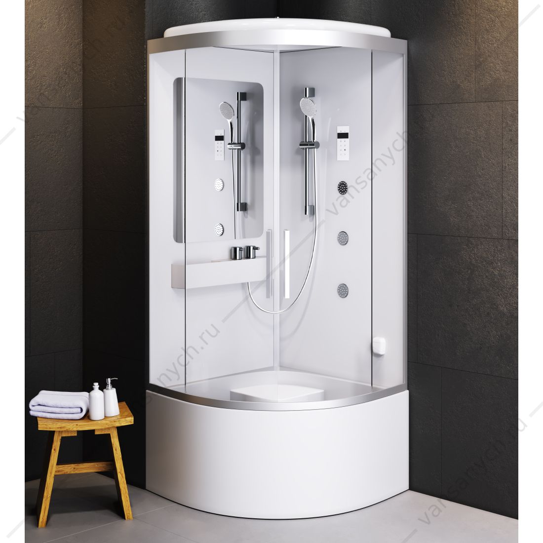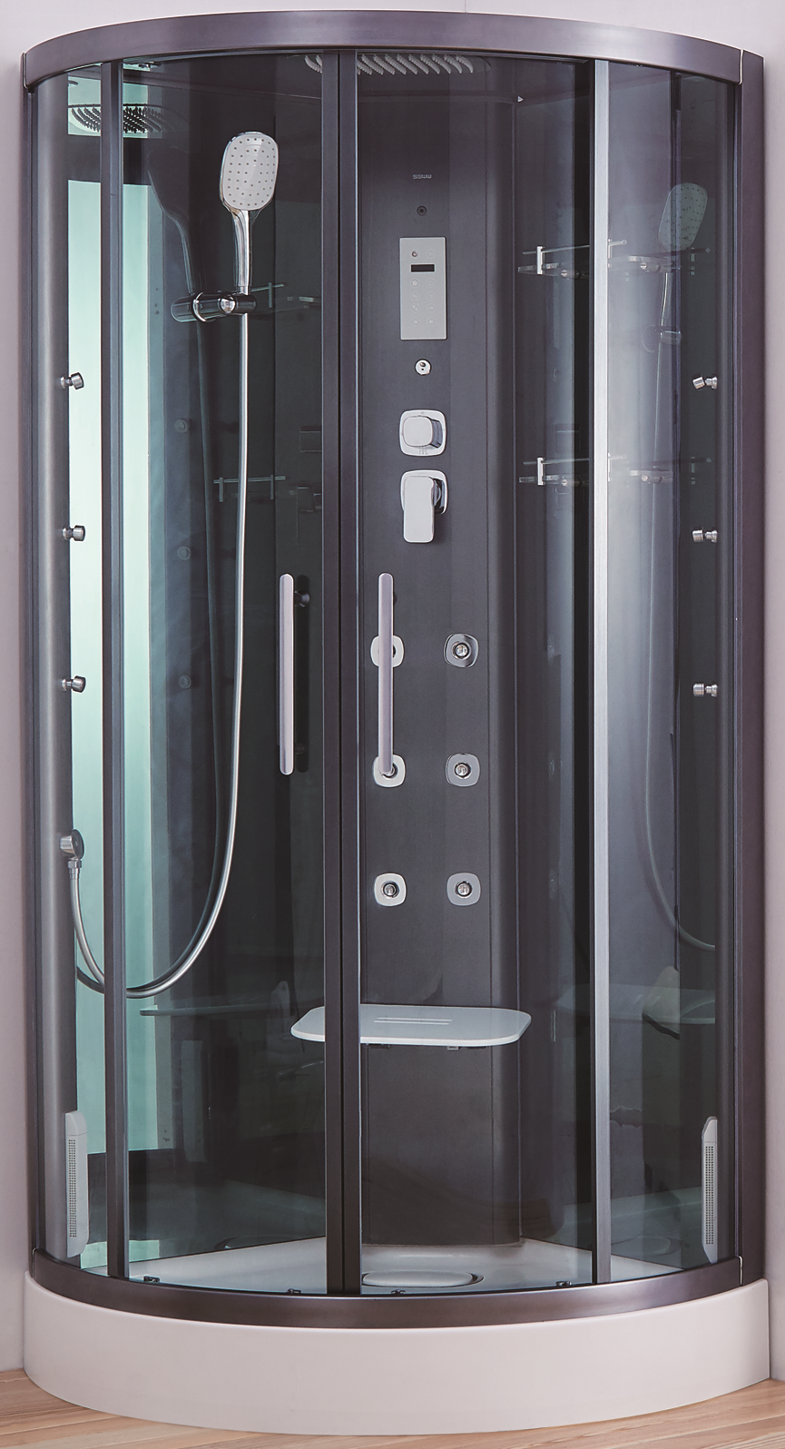 Представлены герметичными капсулами, закрывающимися с каждой из сторон, в т. ч. и в верхней. Совсем не имеет значения, в какой части будет расположена кабинка: в углу/посередине комнаты. От повышенной влажности защищено все помещение, поскольку конструкция закрыта, причем довольно герметично.