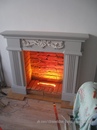 - Декоративная штукатурка. Оформление камина декоративной штукатуркой смотрится изящно и современно. Красиво выглядит на портале белая, молочная, бежевая или яркая штукатурка холодных оттенков.