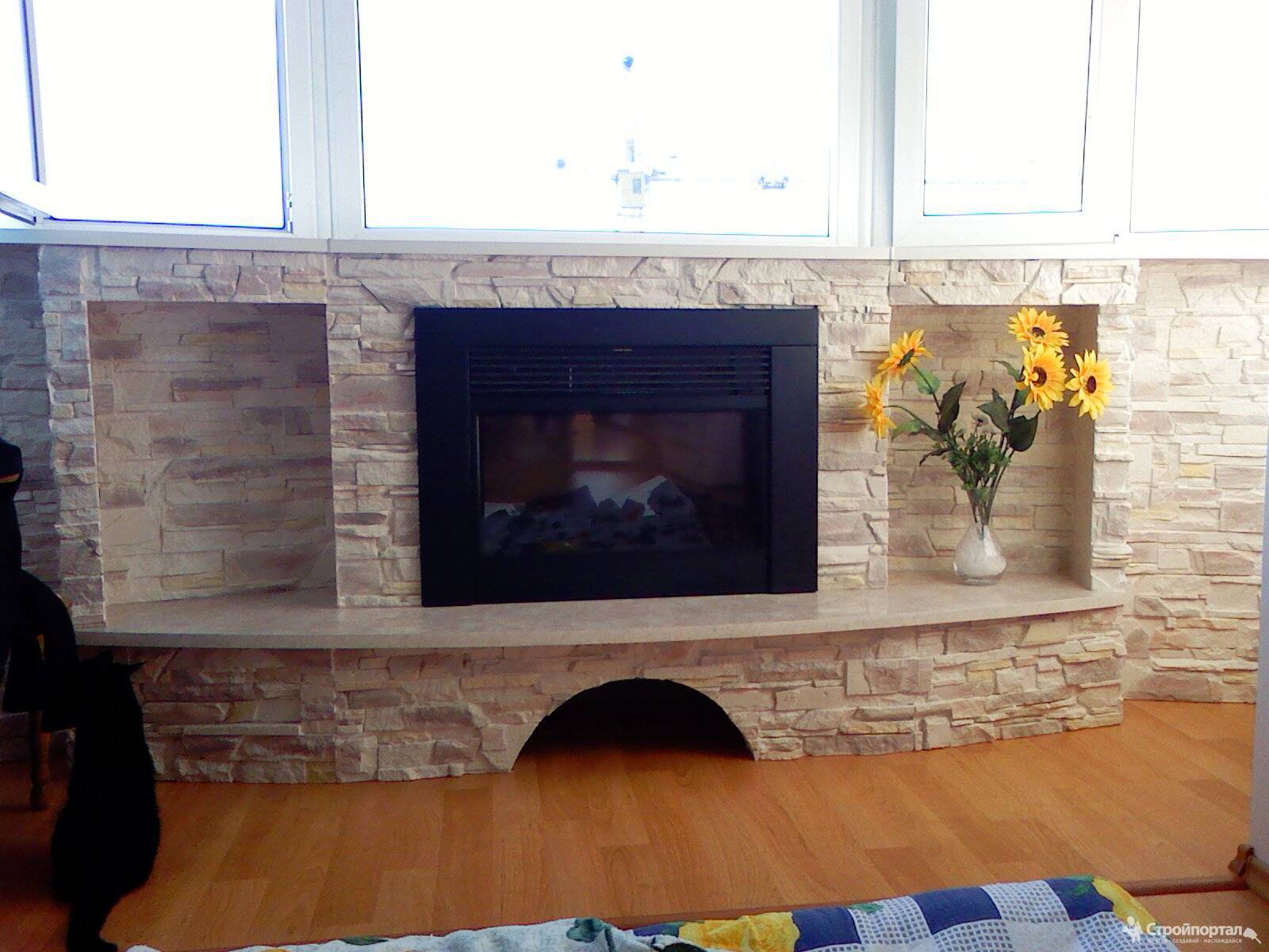 - Натуральный или искусственный камень. Отделать камин натуральным или искусственным камнем можно и самостоятельно. Он смотрится красиво и эстетично в городской квартире.