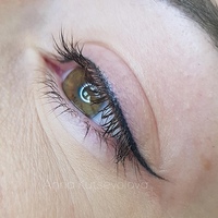 - Процедура заключается в нанесении светлой черной линии вдоль линии роста ресниц.