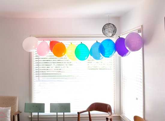 Можно развесить шары радугой — «чтобы в жизни не было черных полос!» — об этой идее подробнее тут