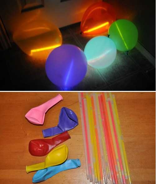 Как это сделать показано на фото — нам понадобятся светящиеся палочки