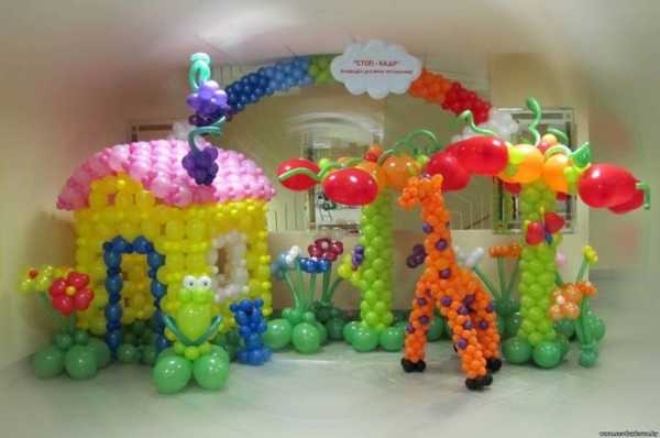 Для тематического праздника часто требуются декорации, и здесь снова шарики приходят на выручку. Профессиональные оформители помогут соорудить из них практически что угодно: замок, деревья, арки, автомобили и т.д.
