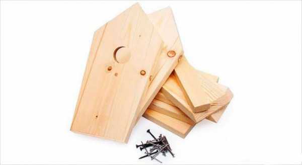 Ответ однозначный — из древесины, причем лиственных пород: хвойные слишком смолянисты. Смола может выпачкать оперение, что приведет к гибели птицы. Не стоит использовать и фанеру, ДСП или ОСБ. В таких скворечниках редко кто-то селится: клей и связующие отпугивают птиц. По той же причине собираем и скрепляем заготовки только на гвозди или шурупы, клей не используем.