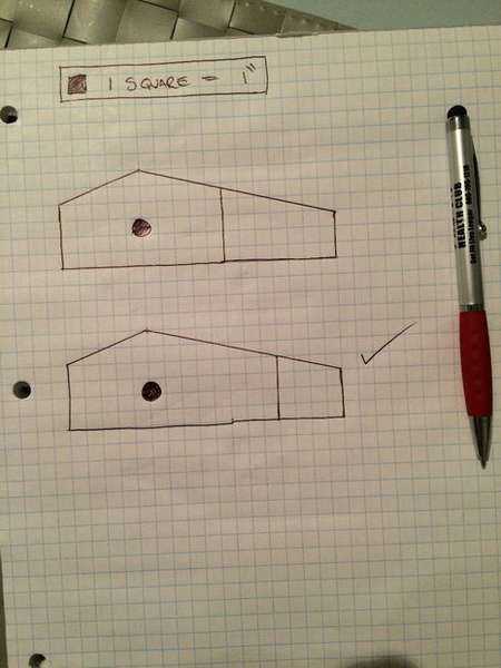 - Просверлите отверстие входа на расстоянии 18 см от нижней части передней доски.