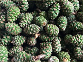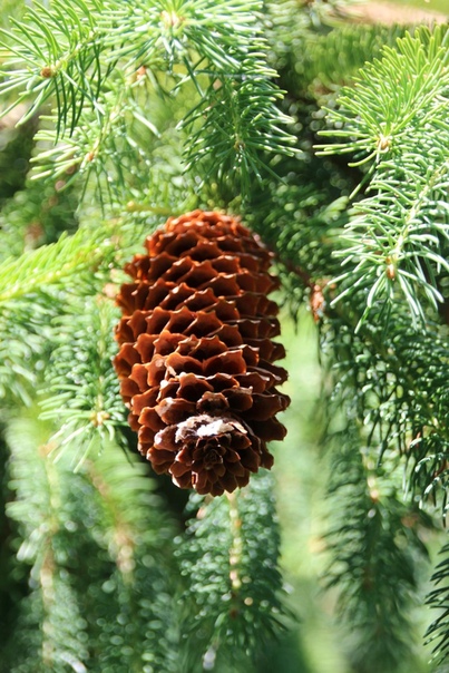 Жизнь шишки начинается ранней весной с небольшого розоватого побега, похожего на горошину.За два лета шишка достигает максимального размера, после чего становится коричневой и твердеет, чтобы раскрыться и избавиться от семян в следующем году. Молодые шишки богаты эфирными маслами, железом, магнием и другими микроэлементами.