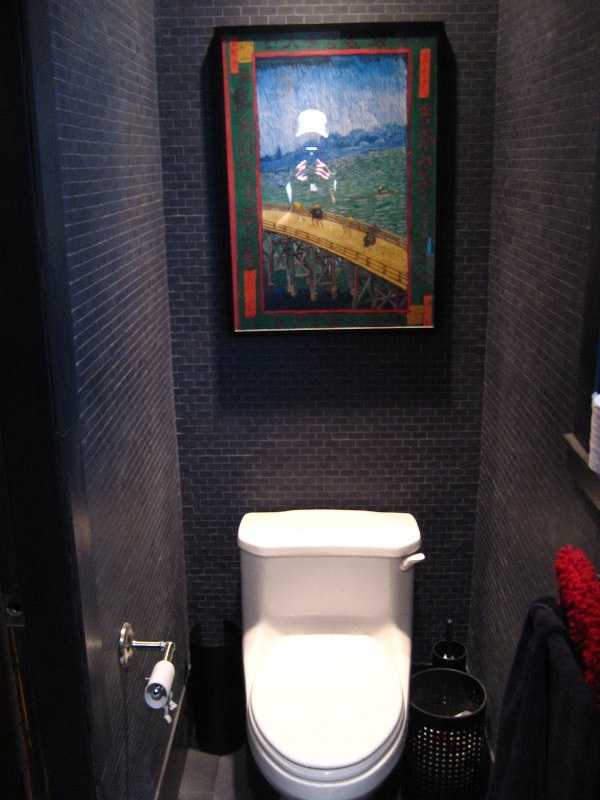 Другие варианты для стен туалета: облицовочный камень, «лицевой» кирпич, мозаика, галька на сетке, закаленное стекло.