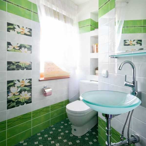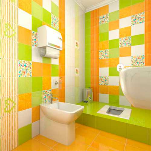 Оригинально выглядит разноцветная плитка, которая украшена орнаментом или рисунком. Она поможет создать в санузле любое настроение, а также станет незаменимой для проставления акцентов или для выделения некоторых предметов интерьера. Плитка в стиле пэчворк отлично подойдёт для декора маленького санузла. Также её можно применять для отделки тех мест, которые больше всего подвергаются воздействию влаги или загрязнениям.