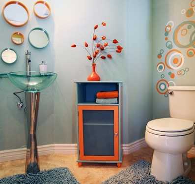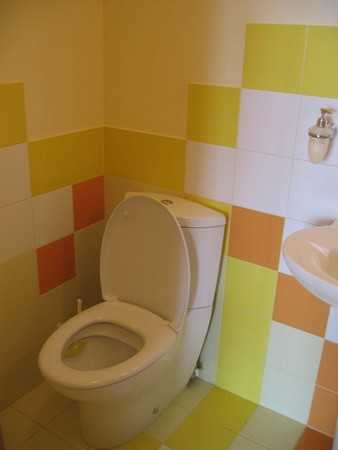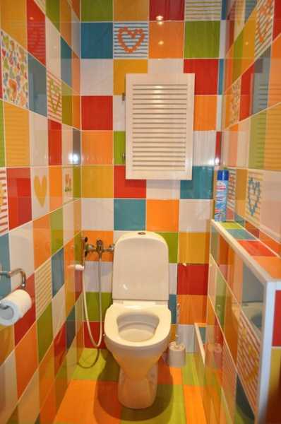 Уютным туалет сделают «жизнерадостные» оттенки спектральных цветов: оранжевый, желтый, светло-зеленый, голубой, бирюзовый, сиреневый и т.п.