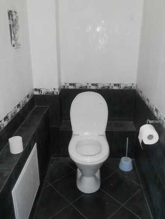- В случае если пол в туалете имеет перепады, то перед укладкой плитки выполняется бетонная стяжка, которая его выровняет.