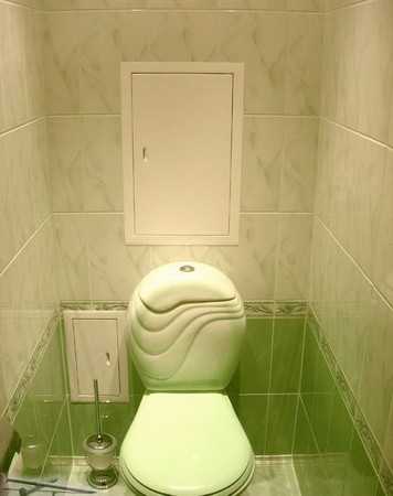 В наше время принято скрывать от глаз всевозможные трубы, шланги и прочие коммуникации. Они явно не украшают интерьер ни кухни, ни ванной, ни туалета. В туалете трубы обычно «зашивают», создавая короб из гипсокартона или пластика. Необходимо оставлять доступ к содержимому короба. Для этого монтируют дверцу или люк. Эту деталь можно замаскировать, отделав ее тем же материалом, которым облицованы стены, или, наоборот, оставить заметной, если она не портит общую картину.