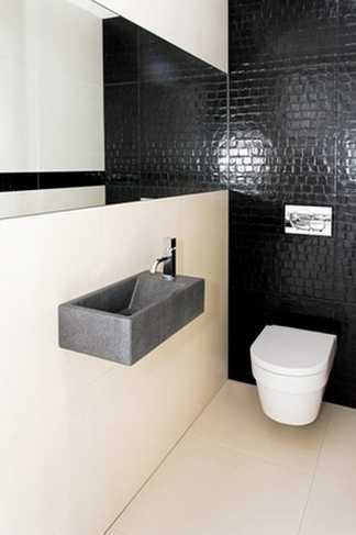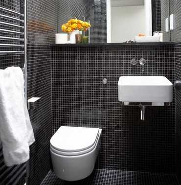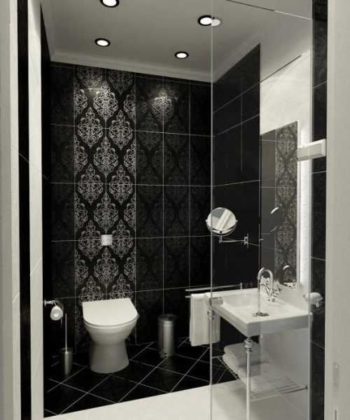 Отлично для оформления санузла подходит и черно-белая гамма, главное – не переборщить с черным цветом.