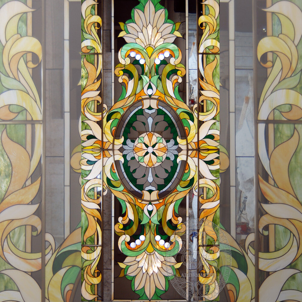 - витражи для оконного проема на стене;