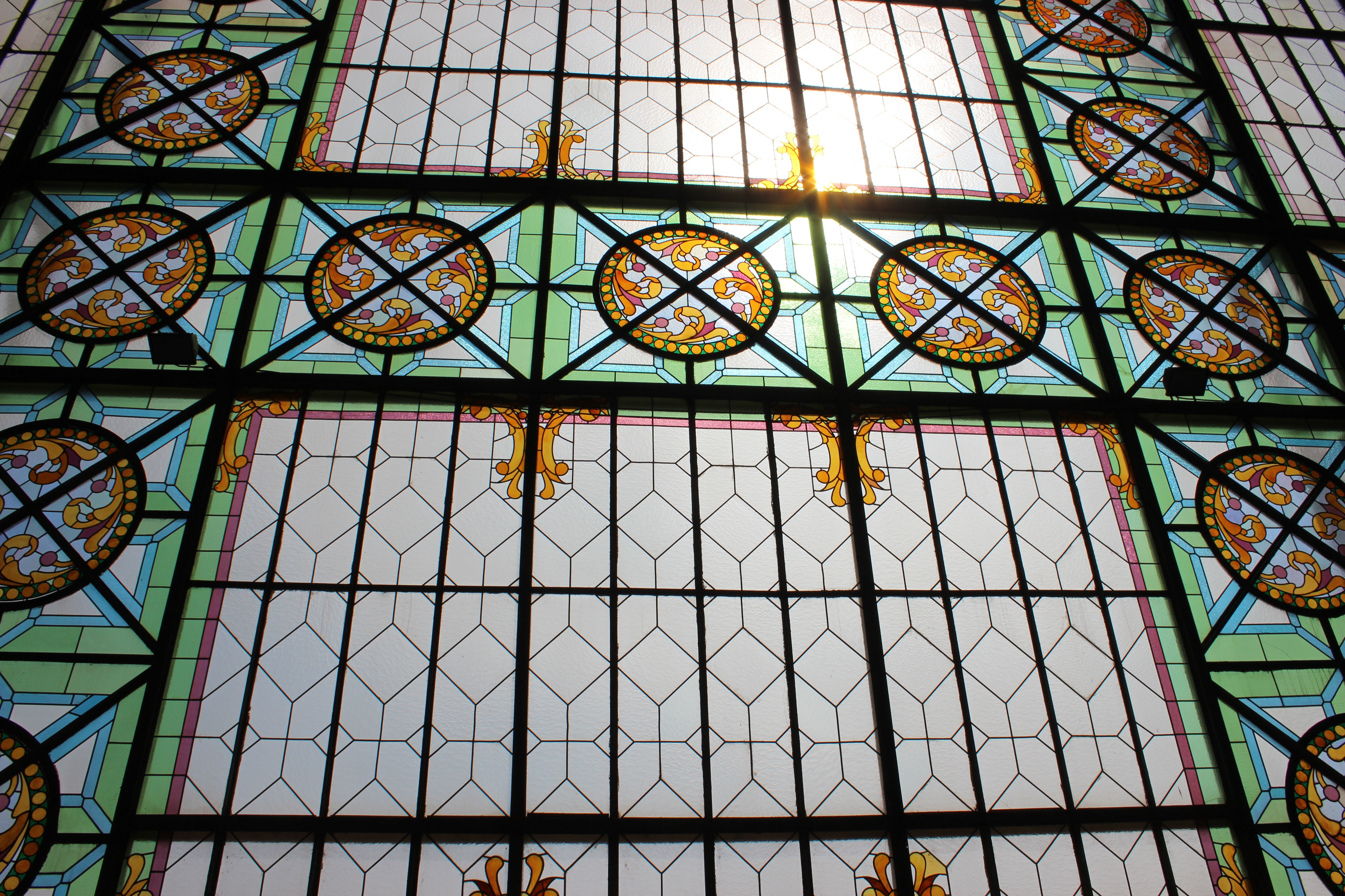 Сфокусируйтесь на нижней половине витража с камерой в альбомной ориентации; увеличьте масштаб так, чтобы ширина рамки заполнилась окном. Этот зум сохраняется, когда вы делаете перекрывающиеся изображения, поднимаясь вверх по окну. Вы можете попробовать сшить их дома.!
