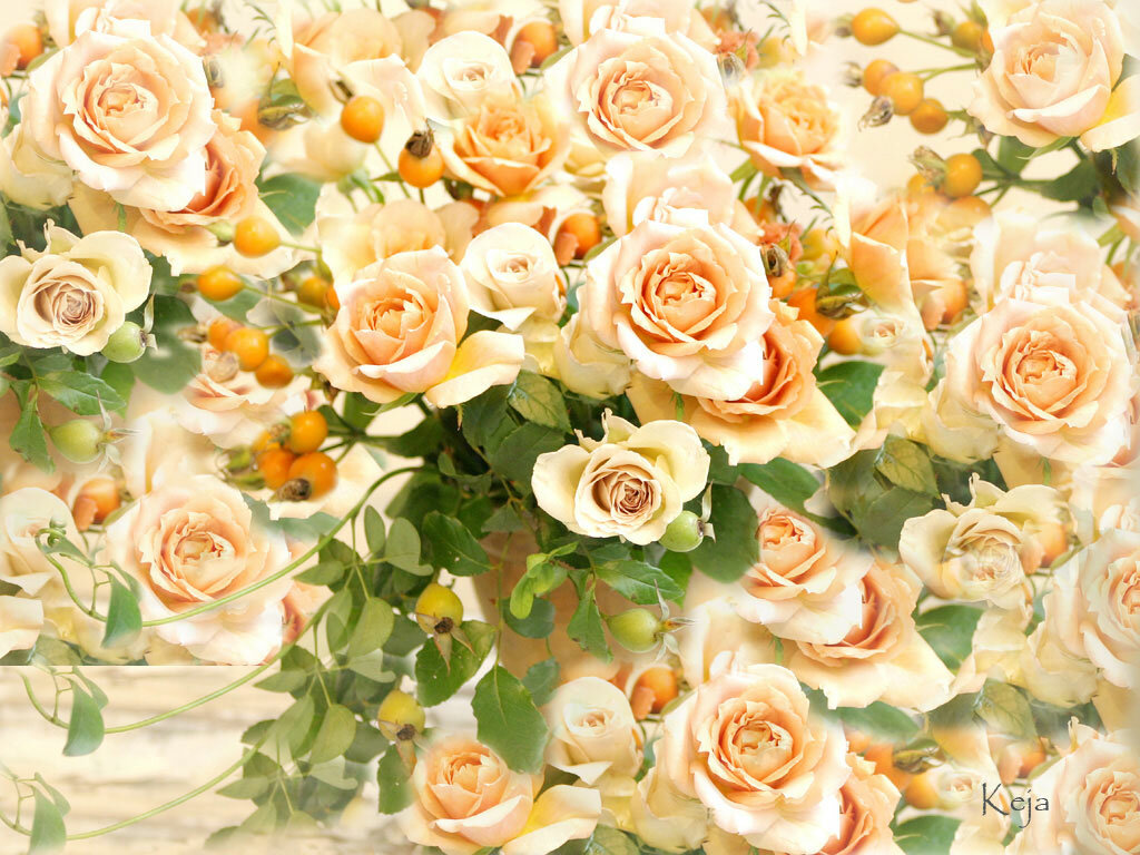 Обои с кремовыми розами