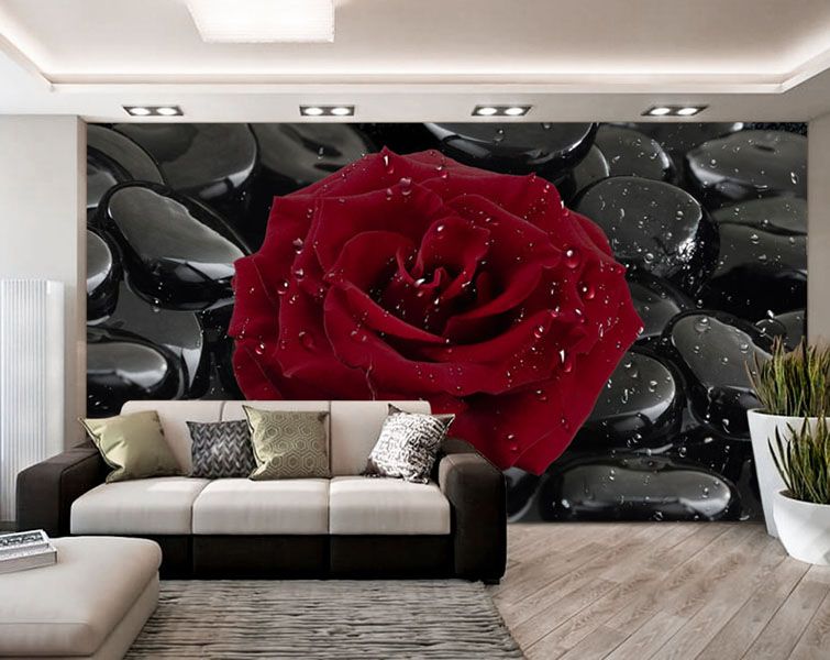 Обои с красными розами хорошо будут смотреться в гостиной или спальне. Благодаря чарующим красным цветам, можно создать прекрасную романтичную атмосферу в спальне. Яркий акцент из одного крупного распустившегося бутона или нескольких цветков, собранных в композицию, отлично украсят одну из стен гостиной.