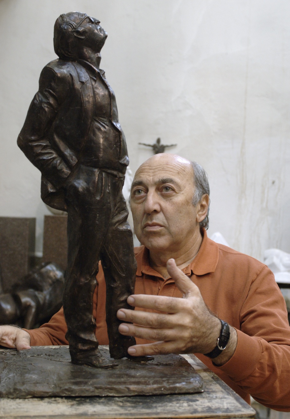 Вспомнилась история с памятником Дзержинскому на Лубянке. Франгулян предлагал его не убирать, а лишь символически спустить с постамента и оставить в таком неприкаянном виде. Разбитая вдребезги дева уж не намек ли какой супруге? Нет, смеется, это друг и сосед по мастерской осетинский скульптор Лазарь Гадаев задел ее машиной, и так расстроился, что ушел в свою мастерскую и долго не выходил… Естественно, на отношениях это не отразилось….