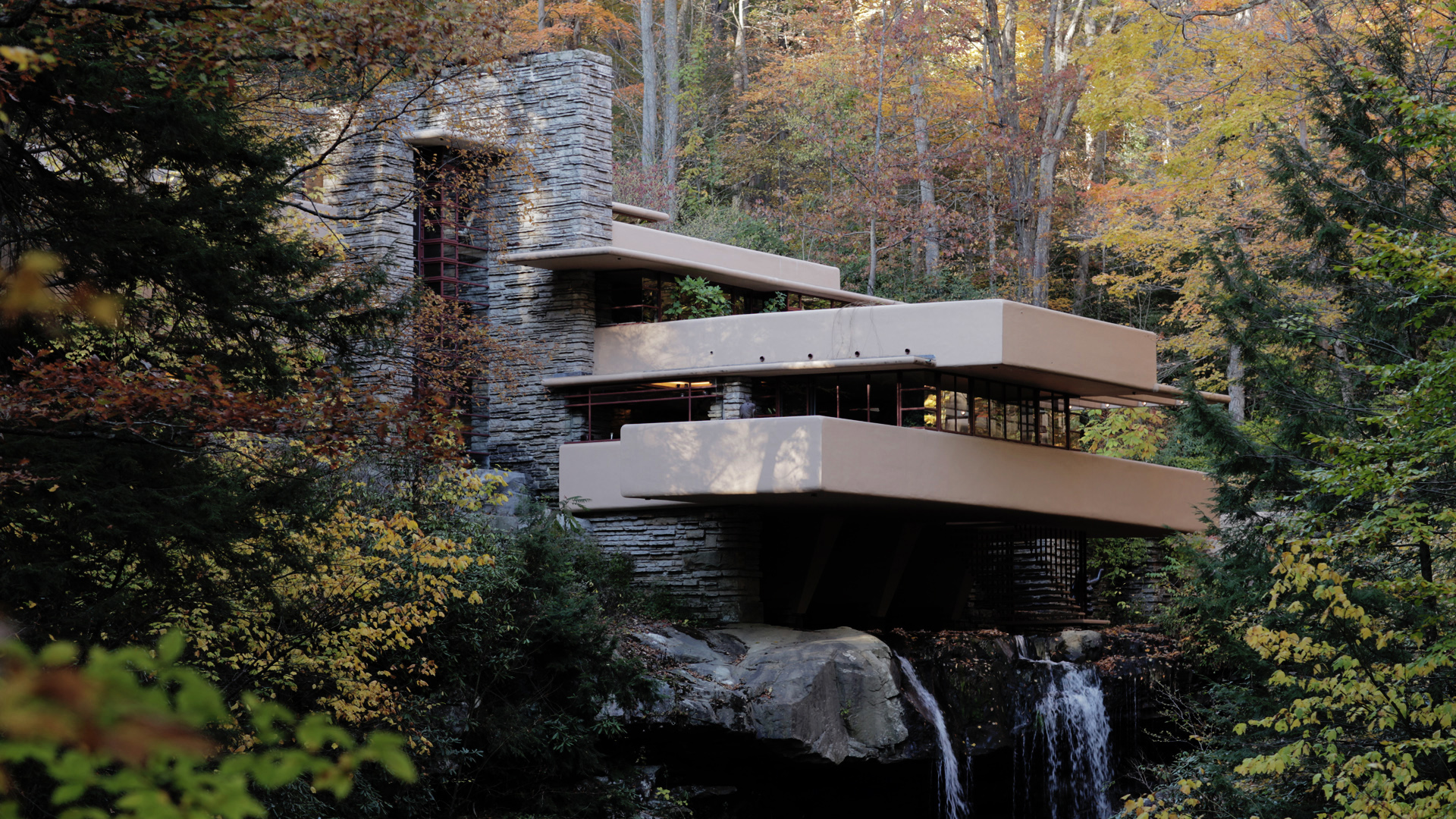 Второй пик в творчестве Райта приходится на 30-е годы. Райт начинает использовать элементы заводского изготовления и железобетонные конструкции, продолжая противопоставлять техницистским устремлениям функционализма романтические идеи единения с природой. В 1935—1939 Райт строит для И.Дж. Кауфмана знаменитый «Дом над водопадом» («Fallingwater»), шт. Пенсильвания. Дом представляет собой композицию из бетонных террас и вертикальных поверхностей из известняка, расположенных на стальных опорах прямо над ручьем. Часть утеса, на котором стоит дом, оказалась внутри здания и использовалась Райтом как деталь оформления интерьера. Строительство дома обошлось в 155 000 долларов, из которых оплата работы архитектора составила 8 000 долларов. Не всё в конструкции дома оказалось совершенным, и он дважды реконструировался в 1994 и 2002 годах с добавлением дополнительных стальных опор.