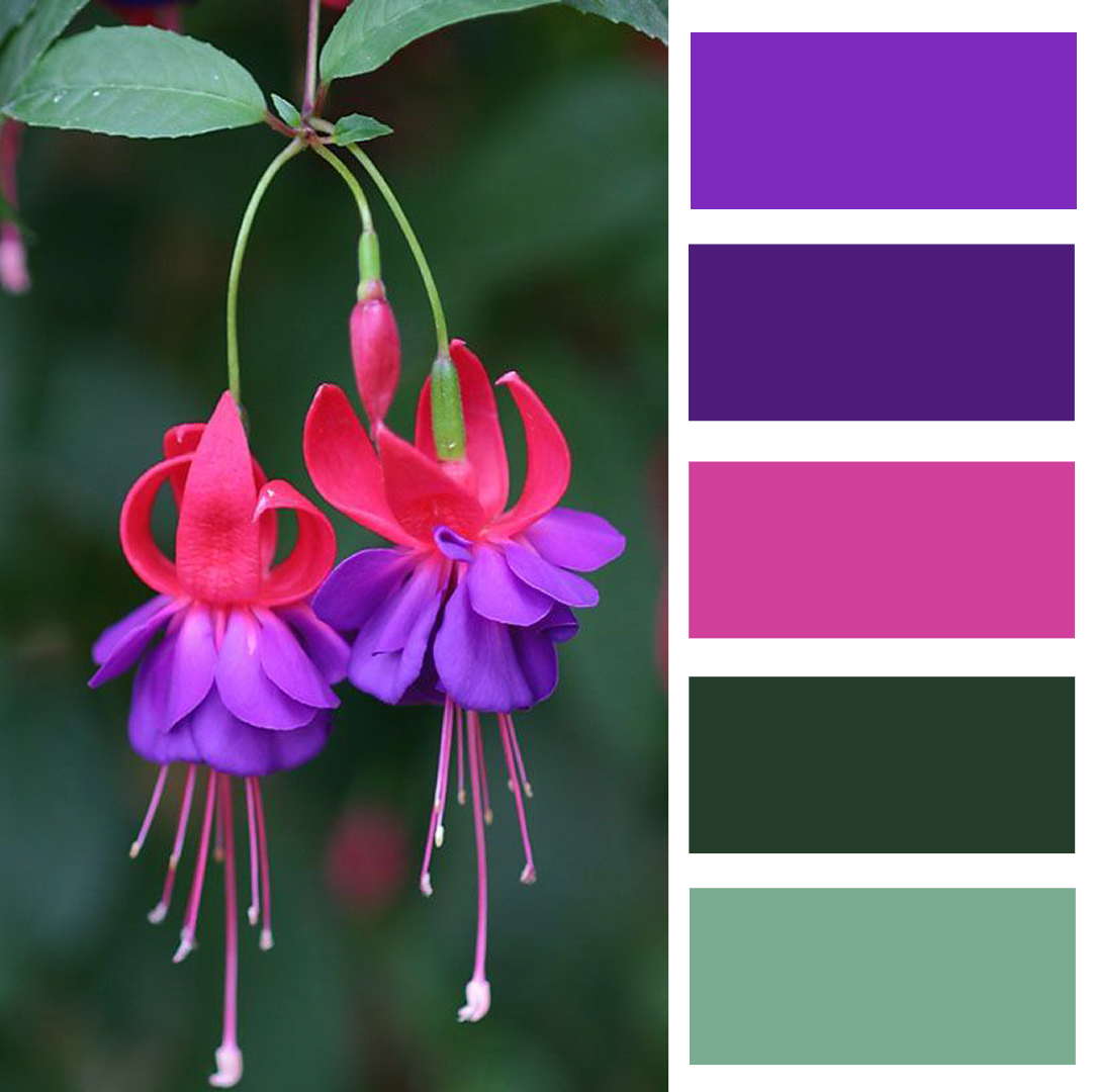 Фуксия — это яркая смесь розового и фиолетового цветов. Оттенок получил название благодаря одноименному цветку, чьи лепестки имеют характерный оттенок.