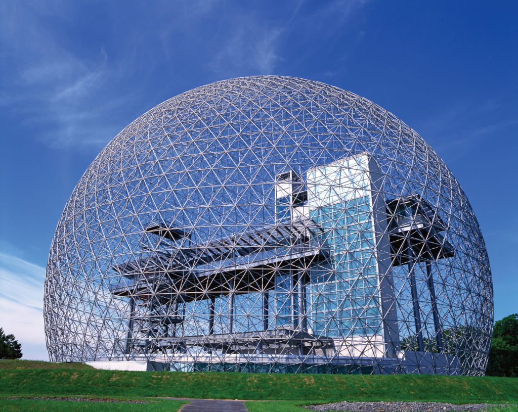 Настоящая слава пришла к Фуллеру в 1967 году, когда геодезический купол был сооружен для павильона США на Всемирной выставке в Монреале (сохранился). Диаметром чуть больше 76 метров, он до сих пор остается самым большим в мире геодезическим куполом.