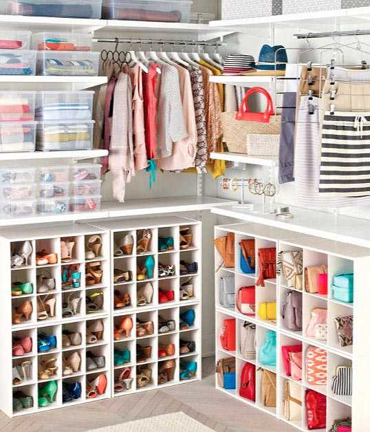 - Вся ваша одежда, обувь, сумки и аксессуары должны иметь свое место, чтобы быть быстро находимыми. Лучший способ организовать хранение такого множества вещей — это использовать специальные разделители («органайзеры») для ящиков и полок, которые легко увеличат их вместительность.