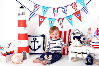 - Морская тема. Нарядите своего мальчика в костюм моряка. Тельняшка и синий берет лучше всего впишутся в атмосферу праздника. Эти элементы используйте в декоре. Яркими символами первой вечеринки на годик малышу станут штурвалы, рыбы, морские звезды и корабли.