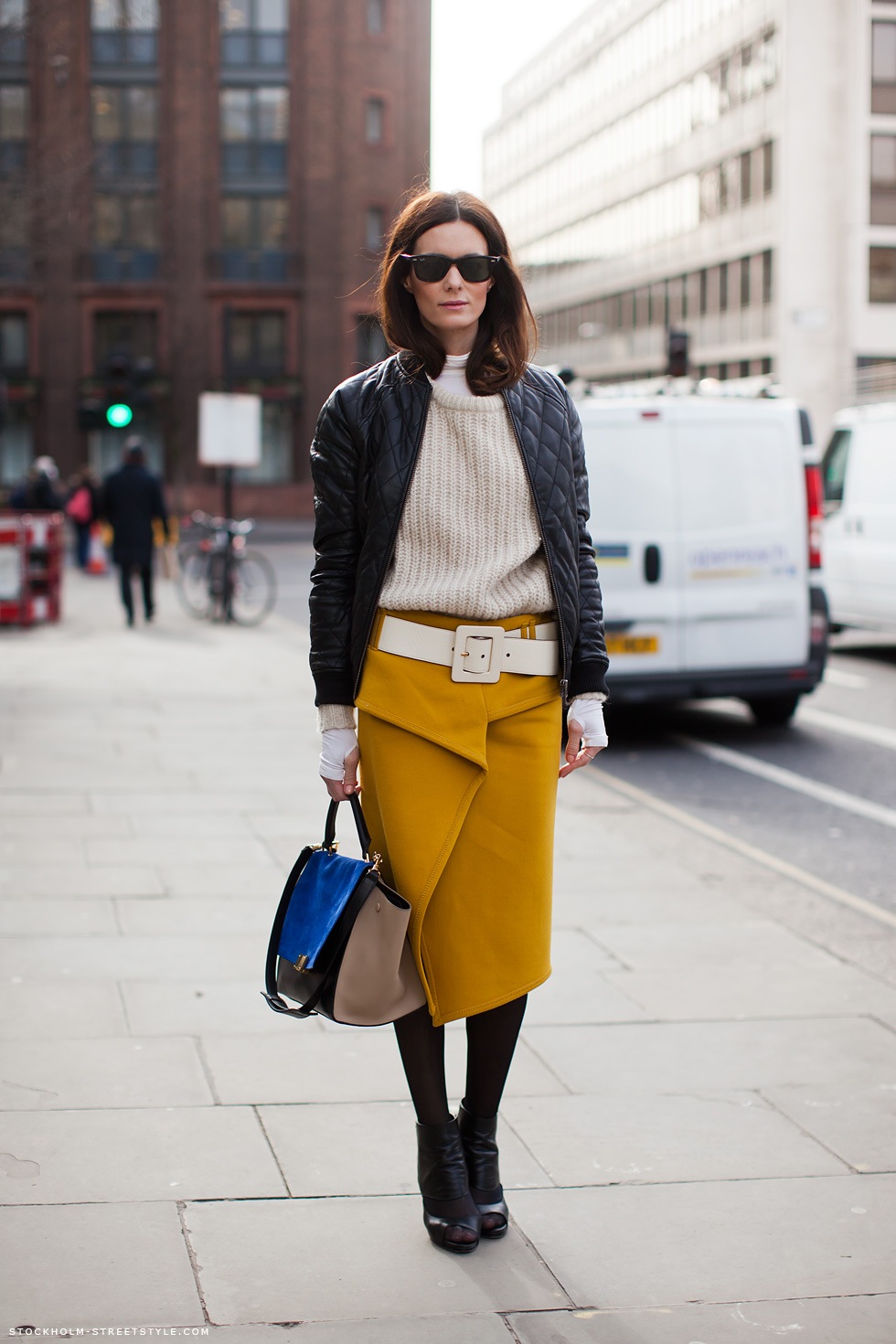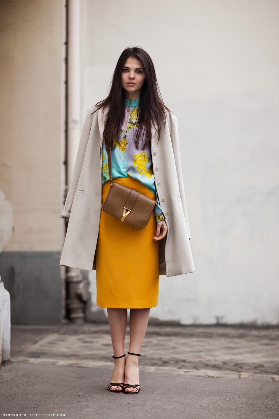 Если вы только подумываете о том, чтобы приобрести горчичную деталь гардероба, не знаете как к этому подступиться, то попробуйте для начала купить несколько аксессуаров в этом оттенке. Сумка, шарф, туфли, платок.