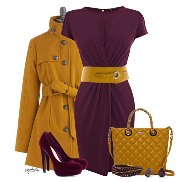 Фиолетовый с горчичным также гармонирует в одежде, но следует подбирать насыщенные варианты – сирень, индиго, слива.