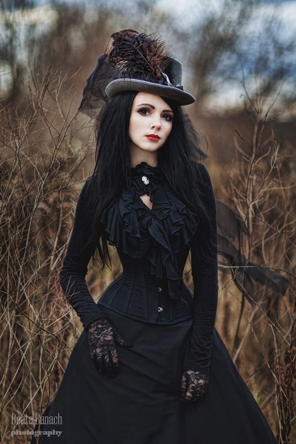 Обрати внимание на модели длины мини или миди, стилизованные под типичные платья 18-19 века – с рюшами и оборками. Цвет, разумеется, темный, в идеале черный. Также подойдут кожаные платья с заклепками или шипами – смесь готического и панк-стиля;