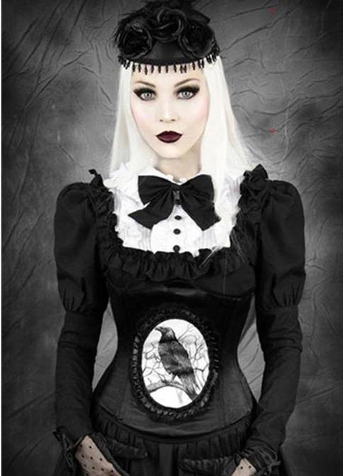 - Блуза. В готический стиль для женщин идеально впишется свободная блуза в викторианском стиле с объемными рукавами или даже жабо. Материал – практически любой, подойдут даже полупрозрачные модели;