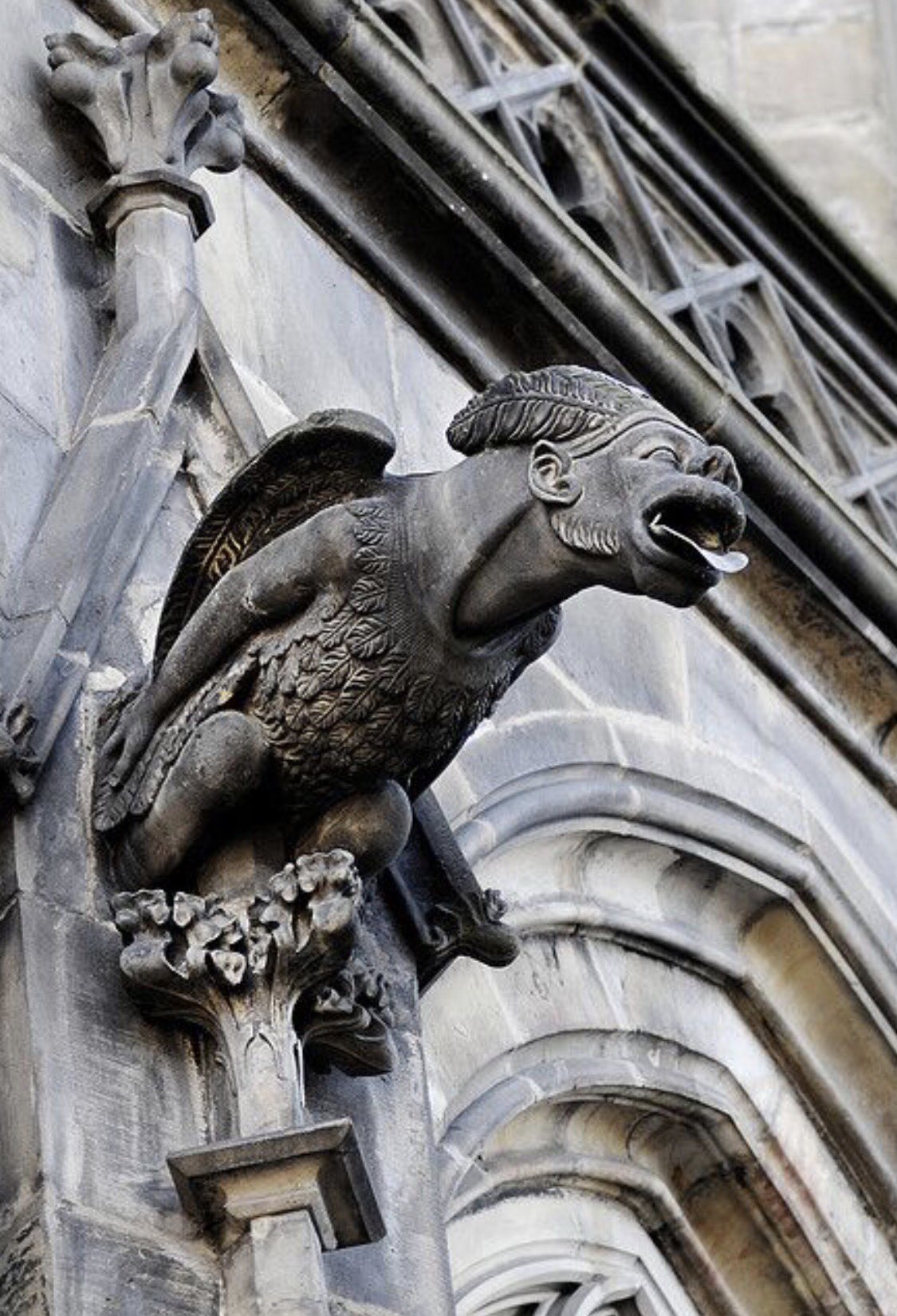 Это уникальный пример особенностей средневековой готики. Фасад культурного памятника украшен десятками башен остроконечной формы, хотя основание архитектурных элементов еще выполнено в массивном романском стиле. Стены, арки, порталы, двор церкви украшают скульптурные композиции, оригинальные рельефы. Скульптур, как и принято в гротескном декоре, наделены оригинальными чертами, от них веет характером и индивидуальностью. Своды, колонны, арки имеют стрельчатую форму, которая характерна для готической архитектуры и украшены объемными горельефами; - Кафедральный собор Кельна, Германия – поражает размерами готических башен, которые будто бы касаются облаков. Это грандиозное сооружение – самый яркий пример готической специфики в скульптуре и архитектуре. Интерьерная и фасадная отделка подчинена единому замыслу – все статуи, фигуры, горельефы, другие декоративные элементы устремлены вверх, как молитва к Богу. Ажурные горельефы, разноцветные витражи, резные лавки, объемные монументы создают ошеломляющее впечатление от изысканности и, одновременно, скромности готического стиля.