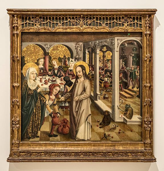 Не смотря на появление светской тематики, базовыми остаются алтарные сюжеты и религиозные образы. Интернациональная готическая живопись схожа с иконописью – особенно, наличием золотого фона, прописями золотом.